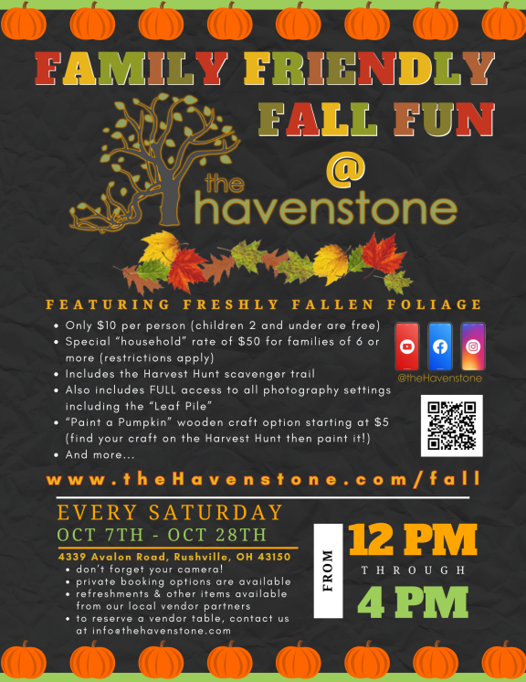 We've got you covered! If you'd prefer, you can book our "Photography Pass" anytime during the month of October and you can get everything above included for free. Our passes are $100/hour, and guarantee private, exclusive time at the Havenstone: no other people, just you and your family (and the occasional staff member).
